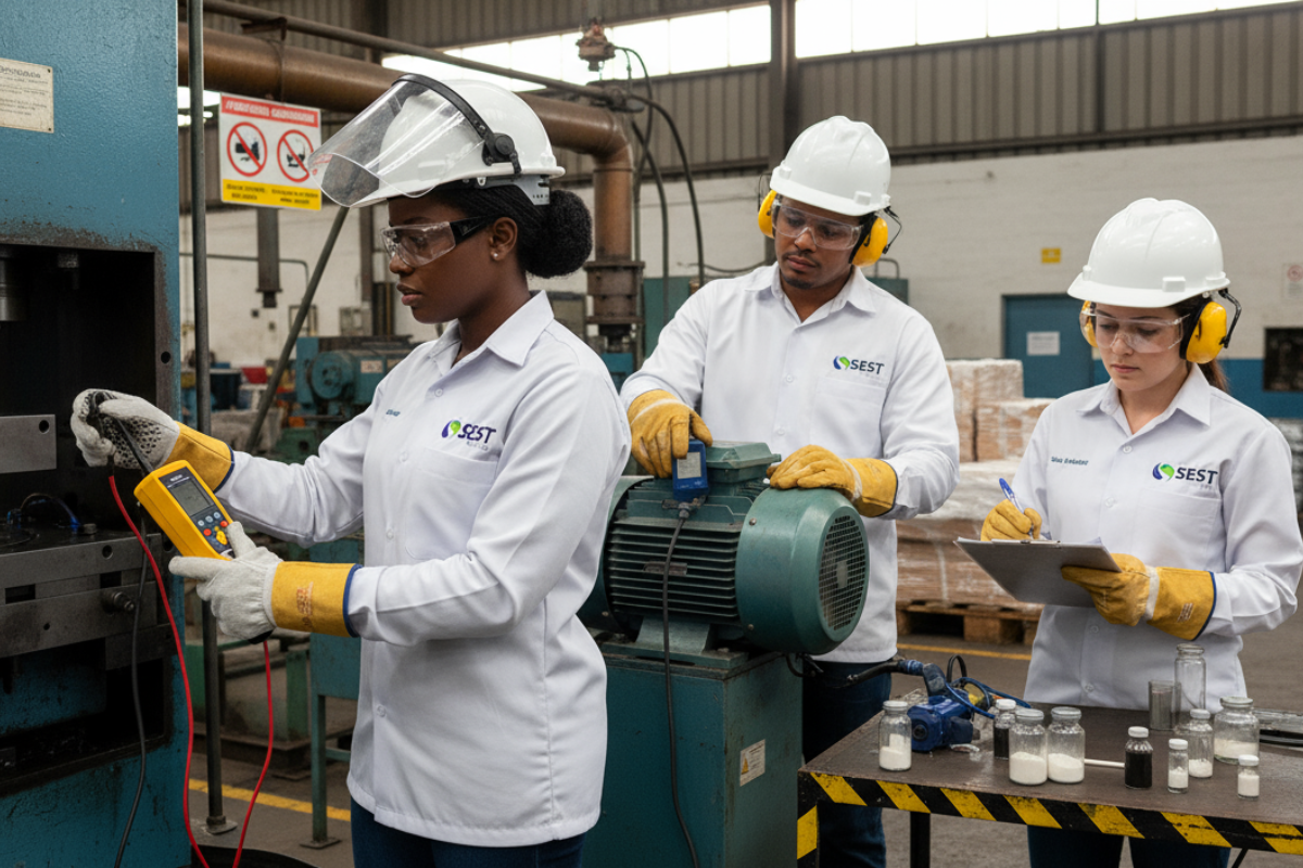 Iniciamos com análise de processos, histórico e perfil dos postos. Definimos abordagem amostral representativa, incluindo variações operacionais. Utilizamos métodos de referência para ruído, vibrações, poeiras, fumos metálicos, solventes e COVs. Após a coleta, processamos dados, com cálculos, incertezas e comparação com limites regulamentares. A análise inclui EPIs/EPCs e sua eficácia real. Finalizamos com relatório técnico de alta qualidade, recomendações e plano de ação estruturado.